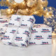 Connecticut wrapping paper. A graphic design celebrating Connecticut's identity with typography that features the iconic red, white, and blue of the American flag.