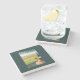 The coasters are gorgeous, a quality feel and heavy weight. They look like a precious archeological find. A rustic stone juxtaposed with a modern floral black and white print. I like the way the print goes slightly imperfect on the cut stone edges giving them a kind-of natural beauty.
