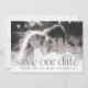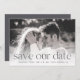 Announce your wedding date in unforgettable style with these elegant and modern photo save the date cards, featuring a full bleed horizontal or landscape orientated photo with "save the date" overlaid in grey lettering along the bottom. Your names, wedding date, and wedding location appear beneath in modern lettering. Personalise the back with additional details, such as your wedding website.