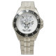 Has heft and feel of expensive stainless steel quartz watches. Good band with safety catch. I removed links, which is easy because engraved arrows show direction to push the linking pins. As always by this seller, the image (a railroad logo) is a perfect reproduction of my emailed image, and is precisely spaced and aligned.