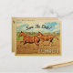 Vintage Conroe Save The Date postcards featuring two beautiful quarter horses, galloping together in this rustic country western ranch scene. This cool mid-century retro design is the perfect way to gather guests to your Conroe Texas destination wedding.