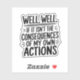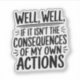 Embrace the chaos with this hilariously relatable sticker! Featuring the phrase "Well, Well, If It Isn't the Consequences of My Own Actions," this sticker is perfect for those who love dark humour, self-deprecating wit, or just a good dose of reality. Stick it on your laptop, water bottle, notebook, or anywhere you need a reminder that sometimes, life throws you a curveball (and it might be your own fault). This durable vinyl sticker is made to last through all your misadventures!