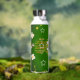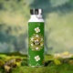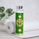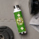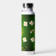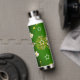This beautiful and whimsical design has a loose pattern of white flowers, constellations and bees. It's displayed against a deep green and black background. Fun and interesting water bottle for travelling anywhere.