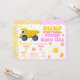 With its trendy pink and yellow colour palette, whimsical stars, and a clean split layout for easy personalisation, this invite is perfect for a groovy construction birthday, two groovy truck party, girly construction theme, retro kids birthday, editable birthday invitation template, and a unique joint celebration.