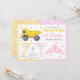 Get ready for the perfect mix of big trucks and royal sparkle with this fun and unique Construction & Tiaras birthday invitation! Featuring a bright yellow dump truck on one side and a delicate pink princess tiara on the other, this design is made for a celebration where muddy wheels meet glitter and crowns.