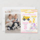 Get ready for the perfect mix of big trucks and magical unicorn with this fun and unique Construction & Unicorn birthday invitation! Featuring a bright yellow dump truck on one side and a cute watercolor unicorn on the other.