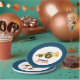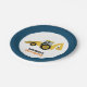 Plate features a construction theme with a navy blue border and a yellow backhoe in the middle. Customise the text with your own details, or delete to use without text. Great for a construction theme baby shower or birthday party!