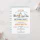 A beautiful invitation featuring adorable construction trucks and diggers in watercolor - a fun way to celebrate the birthday of your little one.