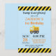 Construction Birthday Invitation. Dump Truck Birthday Party Invite. Boy Bday Bash. Kids Birthday. Blue Background. 1st First Birthday. Yellow and Black Stripes. 1st 2nd 3rd 4th 5th 6th 7th 8th 9th 10th 11th 12th 13th 14th 15th, any ages. For further customisation, please click the "Customise it" button and use our design tool to modify this template.