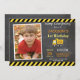 Construction Birthday Invitation with custom photo. Dump Truck Birthday Party Invite. Boy Bday Bash. Kids Birthday. Chalkboard Background. 1st First Birthday. Yellow and Orange Stripes. 1st 2nd 3rd 4th 5th 6th 7th 8th 9th 10th 11th 12th 13th 14th 15th, any ages. For further customisation, please click the "Customise it" button and use our design tool to modify this template.