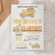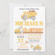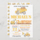 Dump everything! Invite everyone to your construction birthday party with a construction dump truck, excavator, and backhoe invitation template. This construction birthday invitation features a yellow dump truck, excavator, and backhoe on a modern style invitation design.