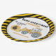 Serve party treats in style with these construction-themed paper plates. Designed for a sixth birthday, featuring a retro excavator and bold “Dump Everything” message for a fun construction party vibe.