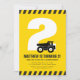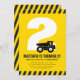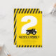 The excitement is building! Get ready for a construction celebration! This black and yellow builder-theme children's birthday invitation features a dump trunk in front of the child's age. Age and background colour can be customised.