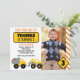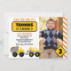 Party Under Construction! This construction party invitation features construction trucks, road signs, and a photo of the guest of honour.