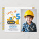 Need construction birthday party ideas for your boy on his 5th birthday? This fun and cute fifth birthday party photo invitation for boys with a construction theme, featuring an illustration of a construction bulldozer and a fun title: "Level Up to 5" is just the ticket. Celebrate your little boy with this construction invite that will make your little man happy, if he is crazy about all things construction. The perfect 5th birthday party construction birthday invitation that you can fully personalise.