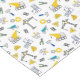 Seamless pattern featuring various construction-related elements, including cranes, tools, hard hats, gears, and warning signs, in a hand-drawn style with yellow, blue, and green, an ideal pattern for kids or those who work in this profession