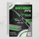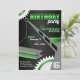 Black, grey, and green birthday party invitations designed for boys who have a strong interest in construction and engineering. These invitations can be used for adults too simply by deleting the single digit age, perhaps making it a monogram instead, if it fits in the allotted space.