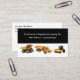 Construction leasing and rental services custom business cards designed with graphic of three common leased construction job site machines and simple editable style you can customise online.