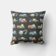 This fun throw pillow is perfect for kids that love big trucks and construction equipment. The pattern features cranes, dump trucks, cement mixers and more on a charcoal grey background that resembles the tire tread for big trucks.