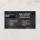 Construction Handyman Business Card. A rough and tumble card great for any man in the labour field. Showcases wood planks, which every handyman uses and fixes in his business. Also shows tire tread and metal, making this professional business card very manly and great for that blue collar worker!
