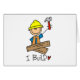A stick figure construction worker with lumber, hammer, and hard hat and text that reads "I Build" on construciton worker T-shirts, mugs, magnets, cards, stickers, keychains, tote bags, and more.