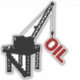 Silhouette of construction platform with crane. Custom text hanging from hook. Vector icon with customisable colour.