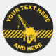 Silhouette of construction platform with crane. Vector icons with customisable colour. Two text fields on circle.