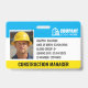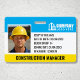 Construction ID badge with fully customisable text and scannable QR code. Branded photo badges give added security on a construction site or as identification at a trade show. This modern template includes your company logo, name, employee details, barcode and contact details. All the text can be customised so you can include the information you want. Ideal for a wide range of businesses, including residential and commercial construction, management, general contractors, building contracting and design-build construction. Printed colours: blue, black, yellow and white. Blue is a popular colour for construction companies as it gives a feeling of reliability and trust. Shop the collection for more popular product ideas and supplies for sale online, designed for the construction industry.