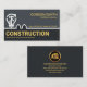A creative bulb tree motif that incorporates a hammer, faucet, leaf and chimney rooftop sit on the left face with two white homes. This border cuts across the card's face. All this symbols show the expertise that you have in construction works i.e. building, renovation works, plumbing, landscaping, roofing etc.