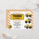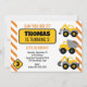 Party Under Construction! This construction party invitation features construction trucks and road signs to set the scene perfectly for your construction truck birthday party.