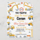 Get ready to build some fun with our Construction Truck Boy Birthday Invitation! Featuring bold yellow and red accents, construction trucks, caution signs, and worksite details, this invitation sets the perfect tone for your little builder’s big day. Personalise it with your child's name, age, and party details for an exciting construction-themed birthday celebration!