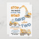 Construction Theme Birthday Dump Truck Party Invitation for your kid's birthday party! Features hand-drawn construction trucks. Construction Invitation, Construction Birthday Invitation, Construction Invite, Construction Party Invite, Dump Truck Party Invite, Stop the Traffic and Close the Road, Bull Dozer, Digger, Cement truck, a wrecking ball crane, splatters of dirt, and a modern kids birthday celebration template that is easy to personalise. More designs and party supplies are available at my shop NiceStudioCreative.