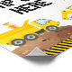 This adorable design features construction trucks and colourful confetti.