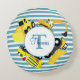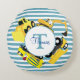 Construction Trucks Blue Stripes Monogram Round Cushion