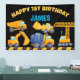 Construction trucks boys birthday party banner