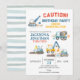 Construction Trucks, Twin Boys Birthday Party Invitation