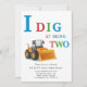 Get ready to dig into some fun with this adorable construction-themed birthday invitation! Featuring a bright orange bulldozer and colorful text that reads 'I Dig At Being TWO', this design is perfect for any little builder turning two. The bold font and playful illustration create an exciting and engaging invitation that will have guests eager to celebrate. Ideal for a 2nd birthday party, this invite sets the stage for a construction-themed bash full of excitement and adventure. Invite your friends and family to join the celebration with this unique and memorable design that's sure to be a hit!