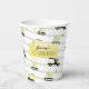 This cute and modern boy's construction birthday paper cup features a white background with construction vehicles such as a dump truck, excavator, crane, and wrecker. Personalise for your needs. You can find more matching products at my store.