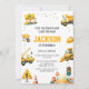 Invite friends and family to join in the celebration with our beautiful Invitation in theme Construction Vehicles. Invitation for your boy.