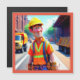 This fun cartoon magnetic birthday card features a happy construction worker on the job.