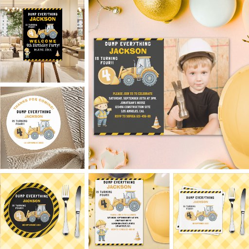 Construction Birthday Boy 4 - Truck & Excavator Designed by Ma de Lourdes Rocha Barrientos