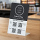 Use scan to pay display signs to upgrade your business experience. This versatile black and white tabletop sign is an ideal addition for coffee shops, apparel stores, and various other businesses.