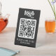 Crafted from durable plastic, this pedestal sign is built to withstand daily use in busy dining environments. Its compact size ensures it fits seamlessly on tables, counters, or any flat surface, while the professional design adds a touch of sophistication to your establishment. The bold contrast of the black background highlights your logo and QR code, making it easy for customers to locate and use.