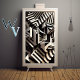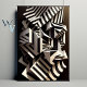Black and white geometric art, in the style of paper sculptures, psychotic cubism, detailed facial features, striped compositions, bold shadows, 3d, multilayered dimensions.
