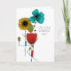 Create a custom card to celebrate a special couple. This wedding card can be customised with your own message on the inside. It features a floral illustration inspired by Art Nouveau design in black, bright turquoise blue, red, light green and golden yellow. Your custom text is in a clean sans serif font.