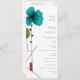 This customisable wedding program has a clean and modern look. It features a floral illustration inspired by Art Nouveau design in black, bright turquoise blue, red, and light green. Your custom text is in a clean sans serif font on either side of this flat program card.