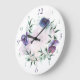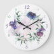 Functional art for your wall that tells time in a flowing contemporary art wreath of graceful foliage and deep blue and purple hydrangea florets. The wreath is a clear image over a watercolor smudge print background so you can customise as desired.