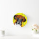 Modern Boxer dog art with light orange circles and yellow background colour.
