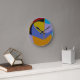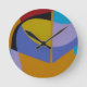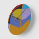 This contemporary clock features an abstract interplay of yellow and purple forms. The vibrant complementary palette establishes dynamic tension and harmony, while clean shapes add structure and movement. A functional artwork that energizes any modern space.