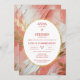 Celebrate your love in style with this exquisite Coral Peach & Gold Commitment Ceremony Invitation. Designed to evoke warmth and elegance, the background features expressive brushstrokes in coral peach and cream, accented with delicate faux gold leaf shapes for a touch of luxury. The central text is showcased within a soft white oval outline, elegantly rimmed in faux gold foil—creating a sophisticated focal point that feels both timeless and modern.